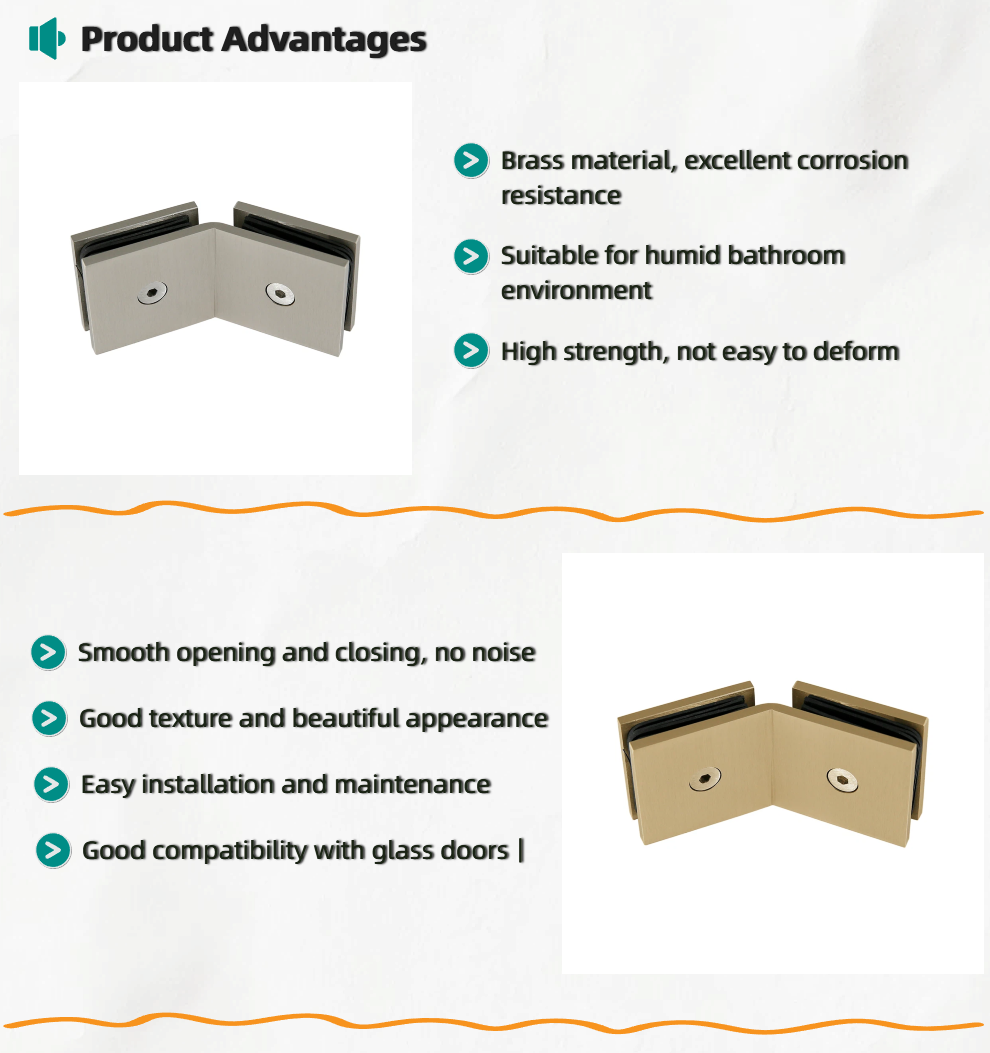 Bathroom Glass Door Accessories Brass Glass Door Clamp for Shower Screen Double Sides 135 Degree Brass material Bathroom dedicated Corrosion resistant Stable structure Inquiry Send Email