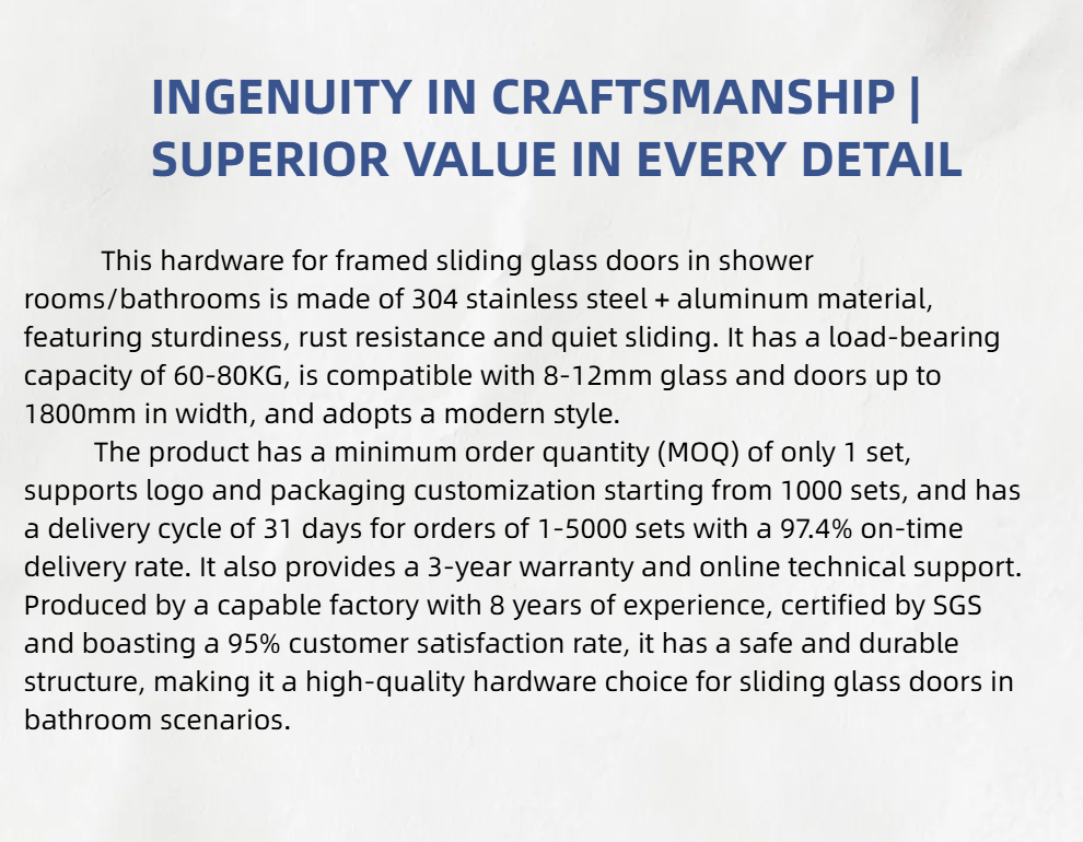 Roller Load Adjustment: Customizable roller structures to increase load capacity from standard 50kg to 80kg, suitable for commercial shower rooms with high-frequency use.