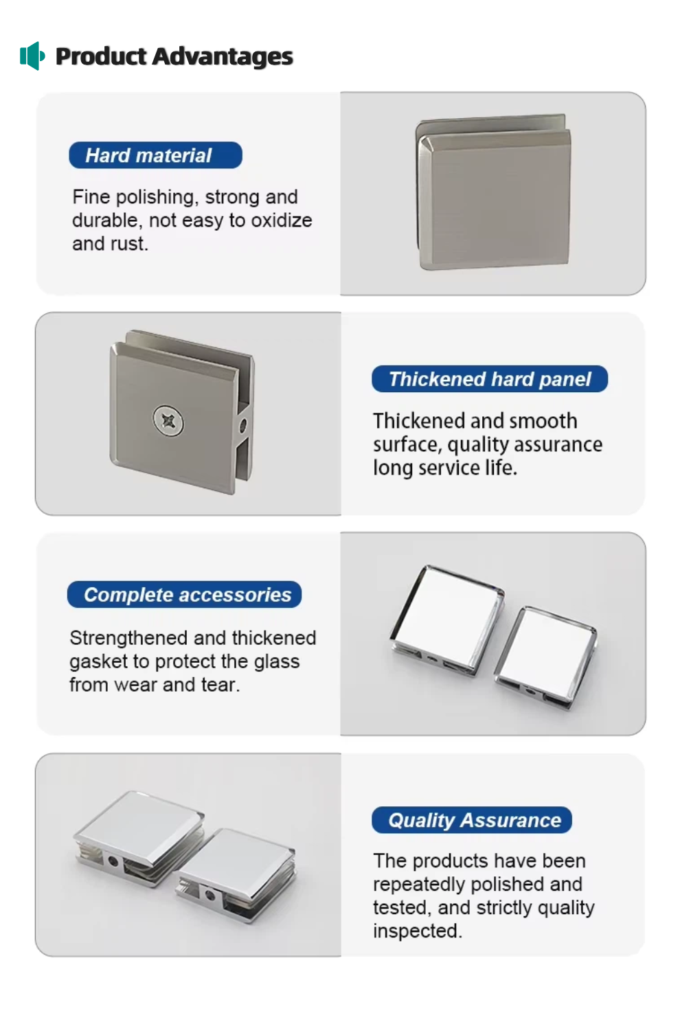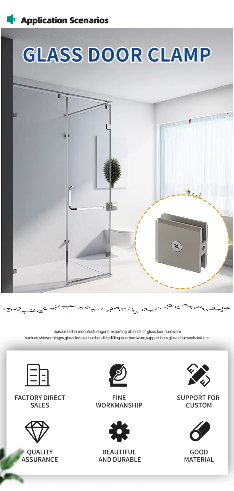 Factory Direct Heavy Duty Bevel Wall Mounted Shower Glass Retainer Clips Bathroom Glass Door Pivot Hinges