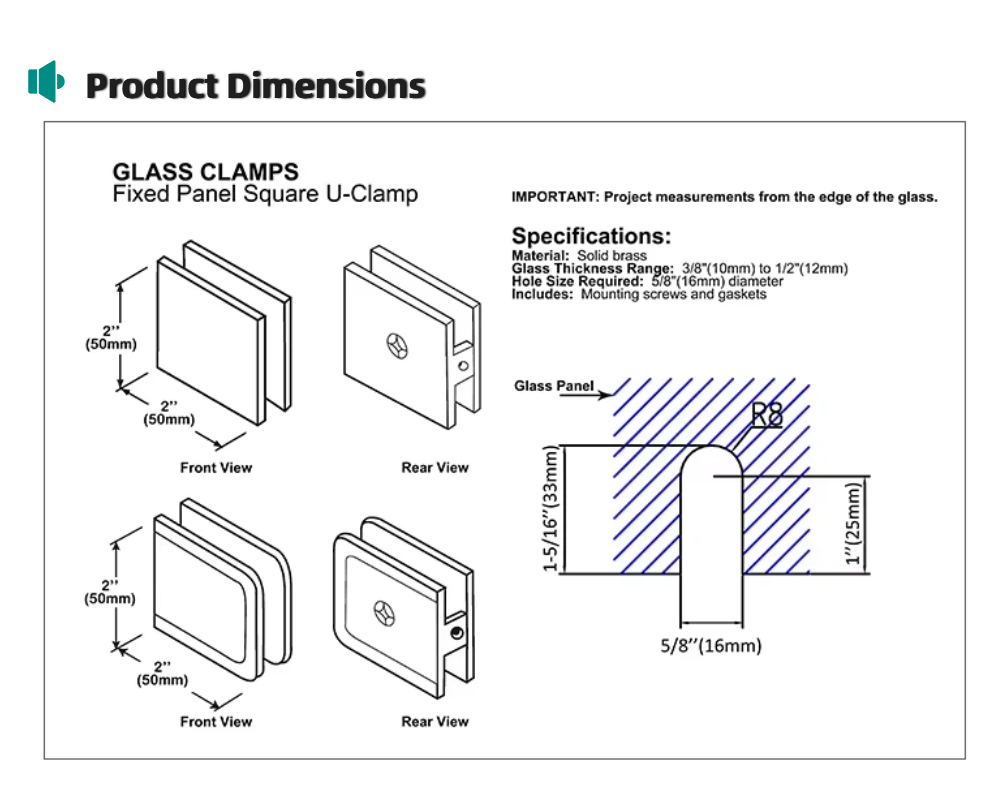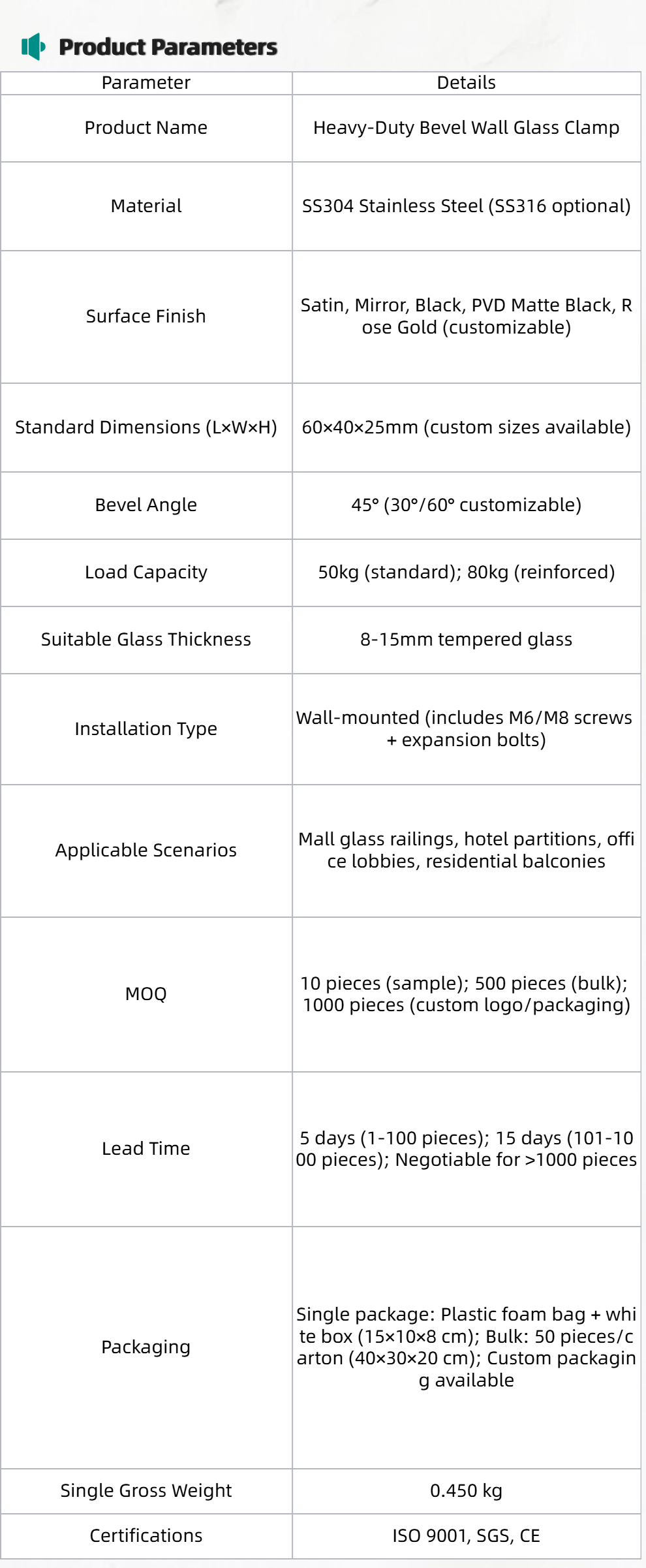 Load Capacity Tuning: Reinforced structure option to increase load capacity from 50kg (standard) to 80kg, suitable for heavy 12-15mm tempered glass in high-traffic commercial spaces (e.g., mall railin