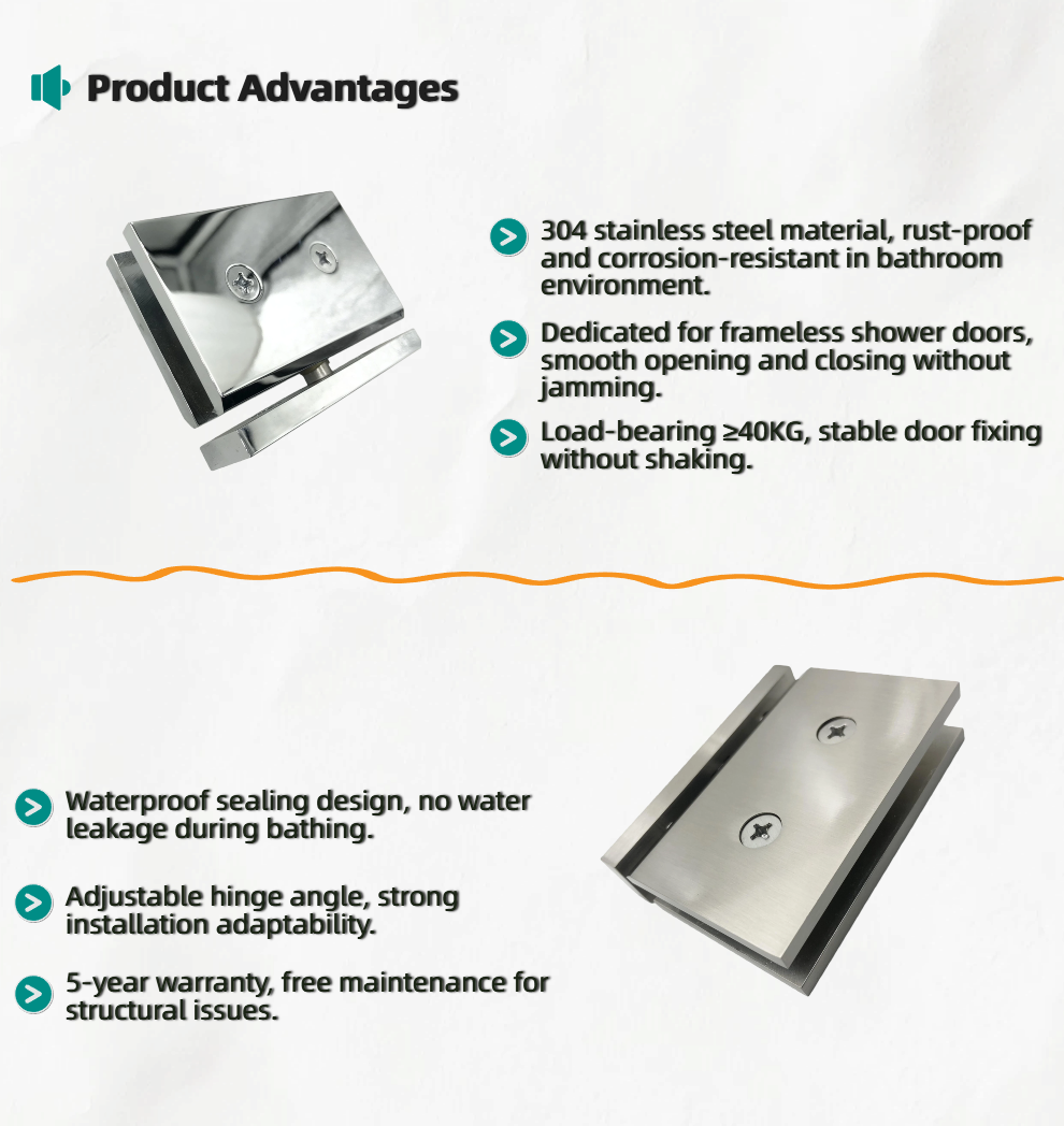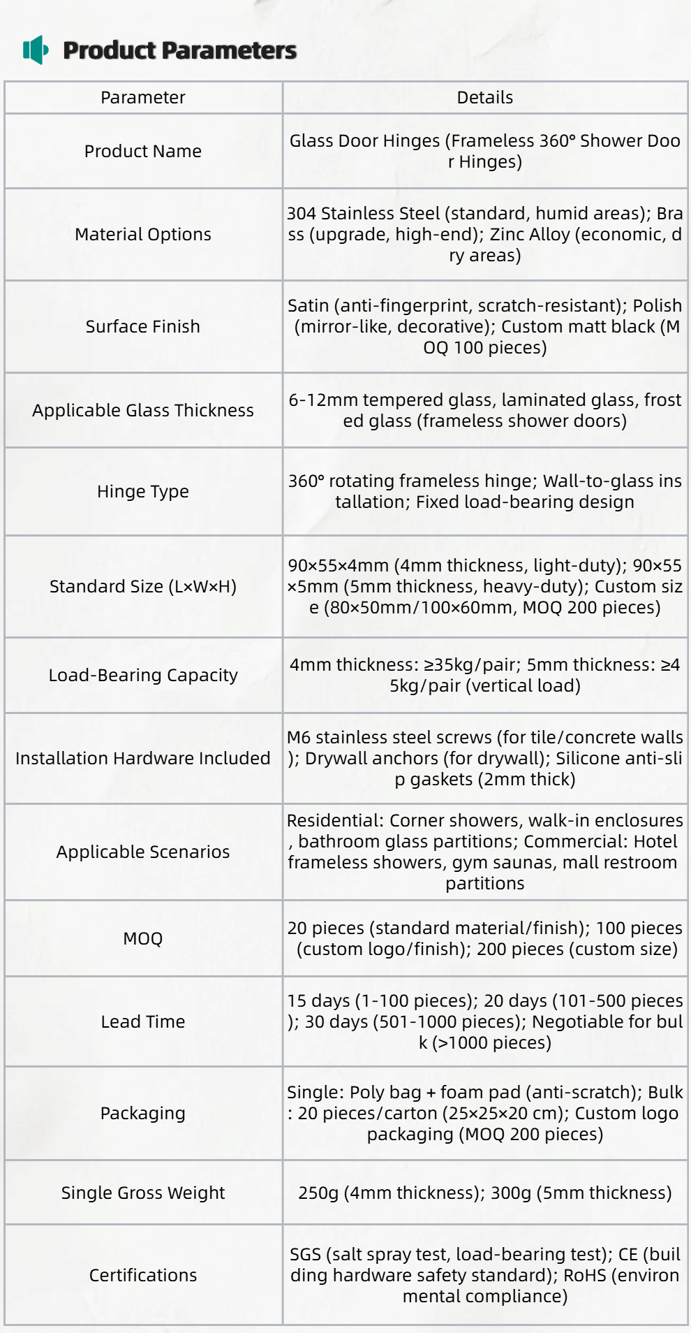 360° Full-Rotation Flexibility: Unique 360° swivel design allows frameless shower doors to open/close in any direction—fits corner showers, walk-in enclosures, and irregular bathroom layouts, eliminat