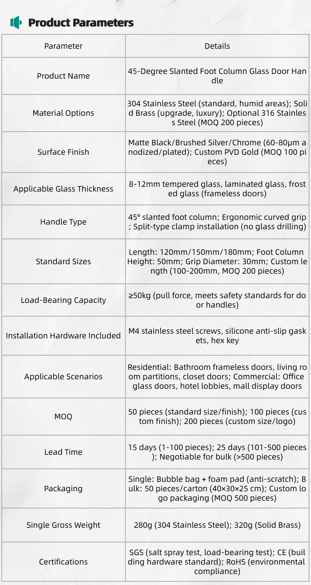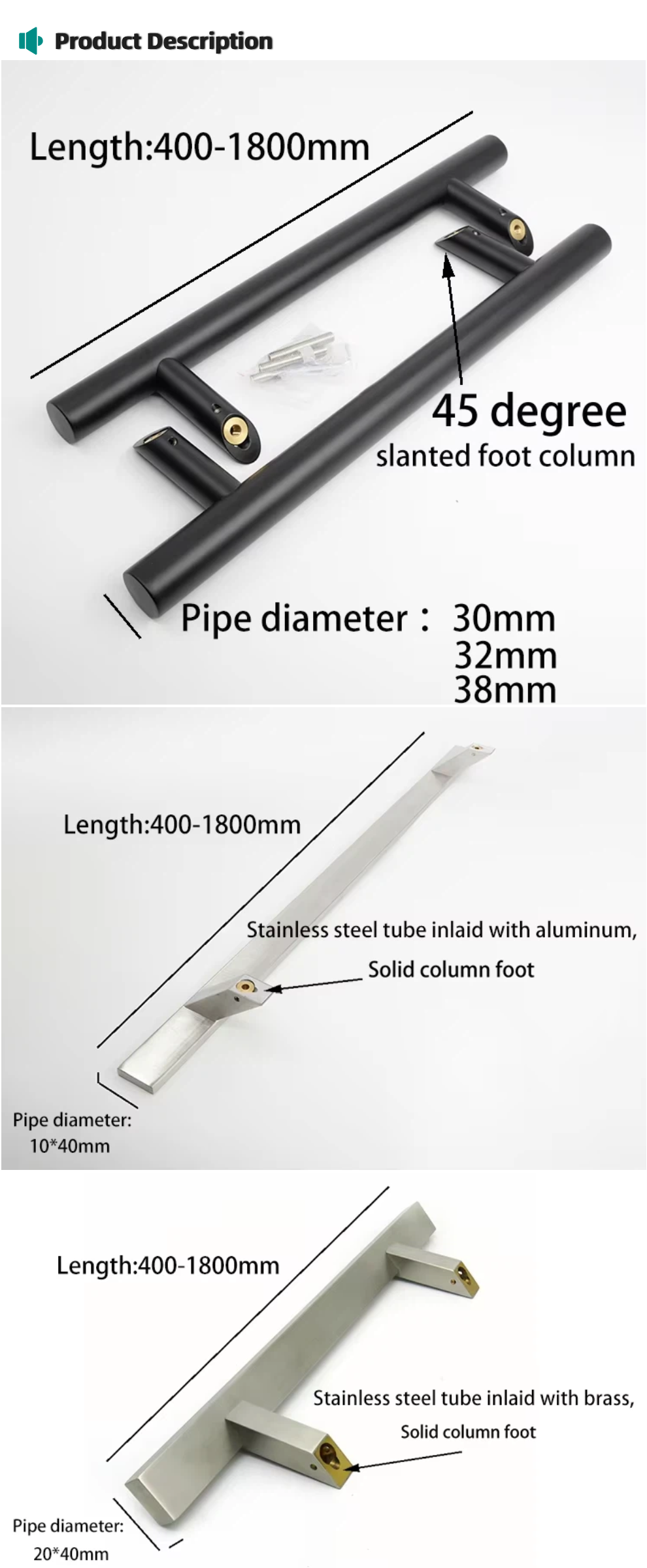 Handle 45 Degree Slanted Foot Column Inlaid With Aluminum Producers Customizable Size Hardware Custom Hand Glass Door Handle
