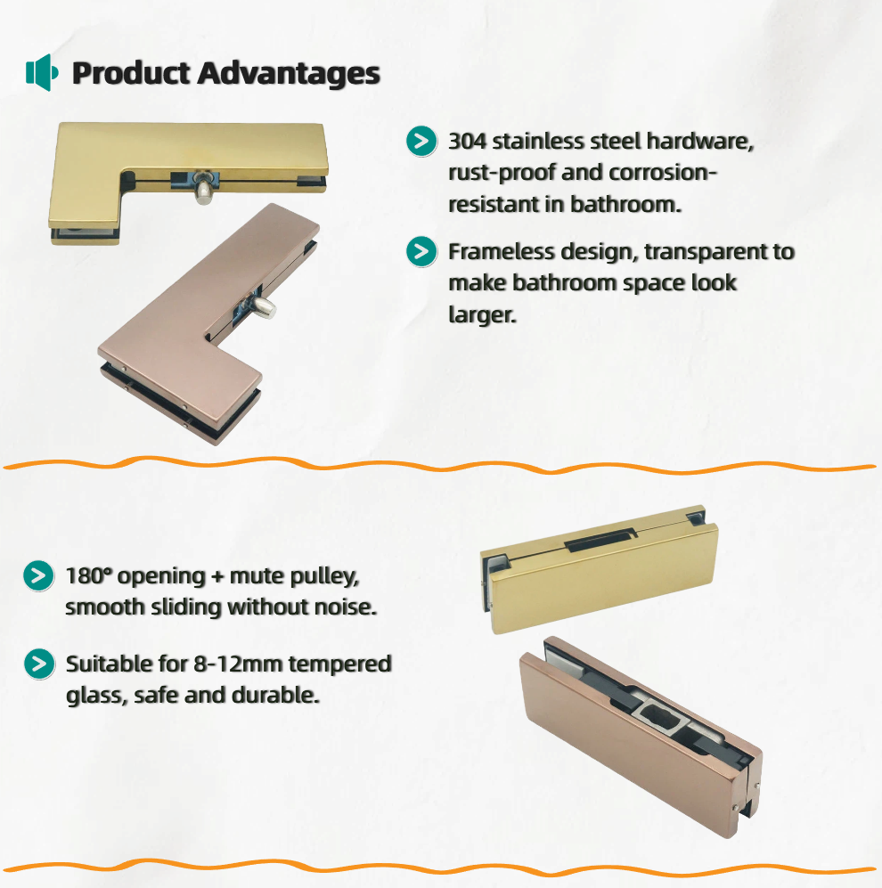 Multi-Scenario Glass Compatibility: Tailored for 8-12mm tempered/laminated glass, supporting both swing (hinge-mounted) and sliding (roller-mounted) designs. Universal for left/right-handed doors, no