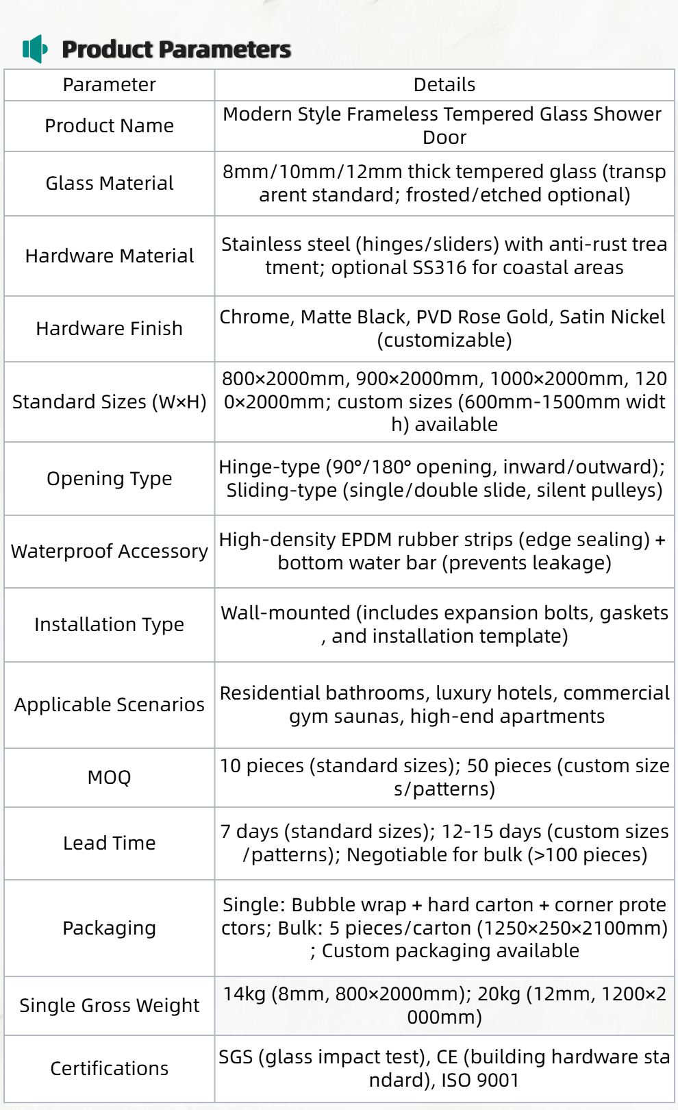 Pure Frameless Design: No visible aluminum frame around the glass, maximizing transparency and creating a sleek, minimalist look—perfect for modern bathrooms that prioritize open, spacious visual effe