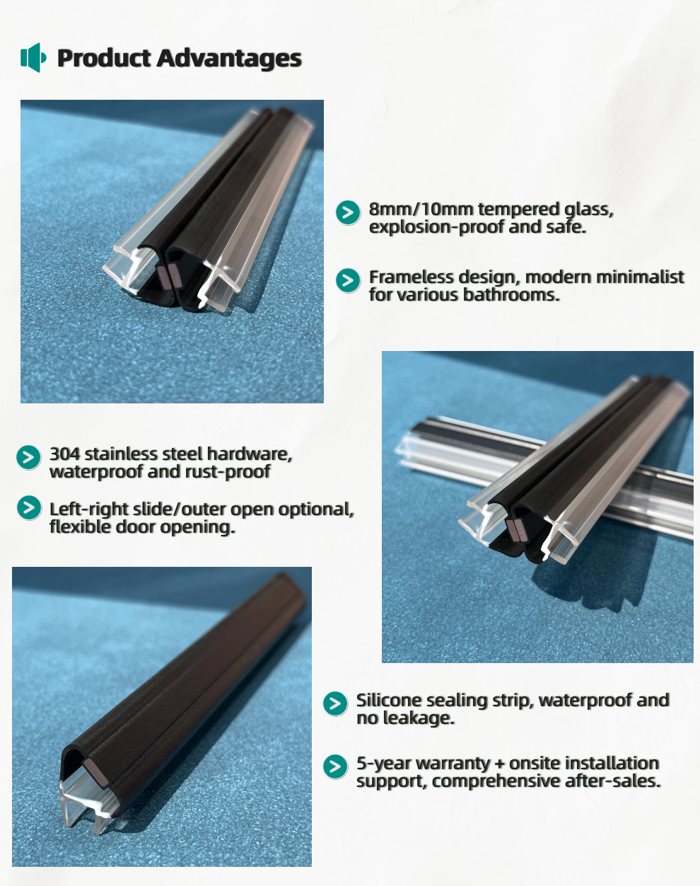 Flexible Installation: Supports hinge-type (inward/outward opening, 90° fixed) and sliding-type (single/double slide) designs, fitting standard bathroom widths (800mm-1200mm) and non-standard layouts