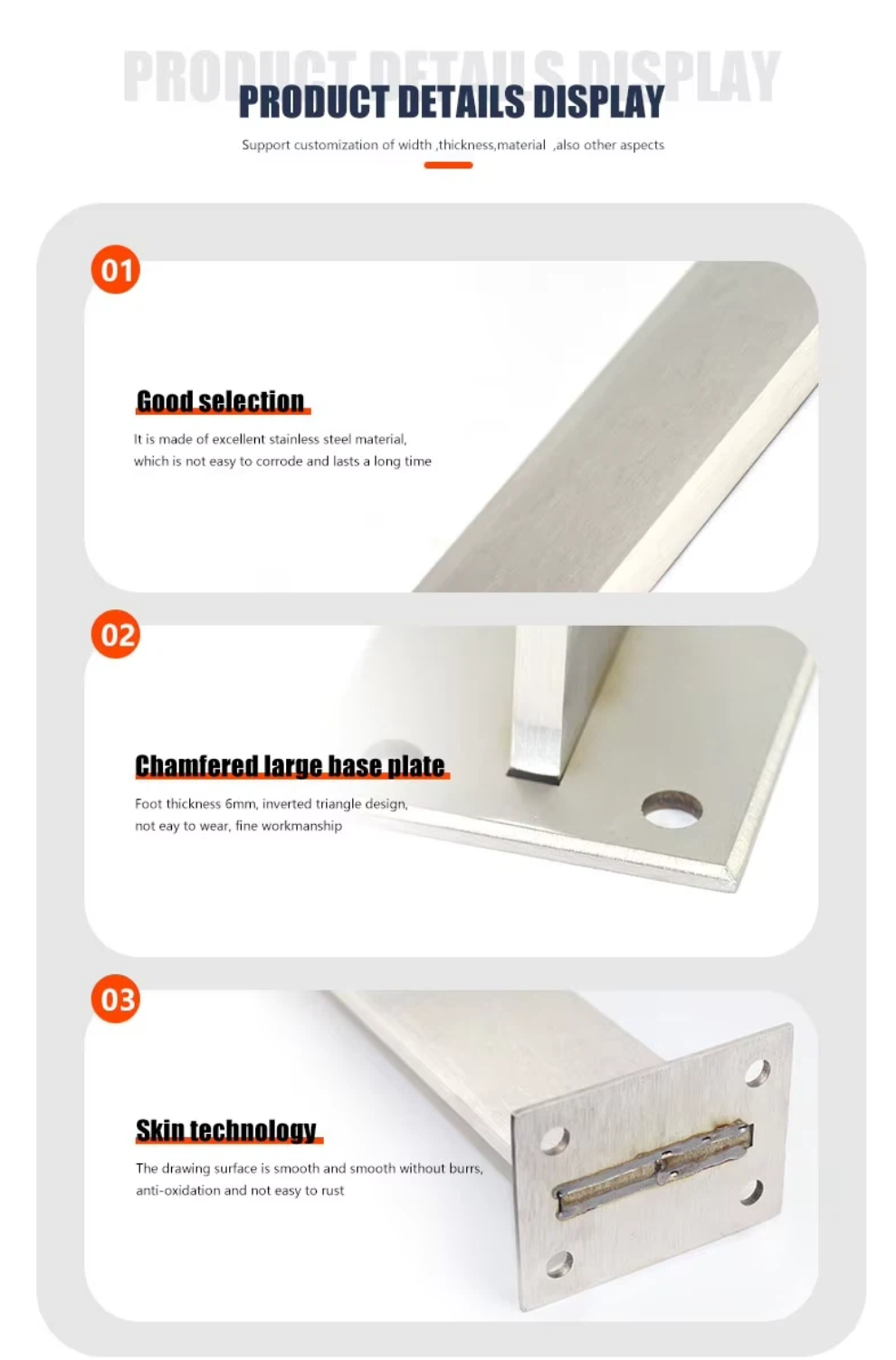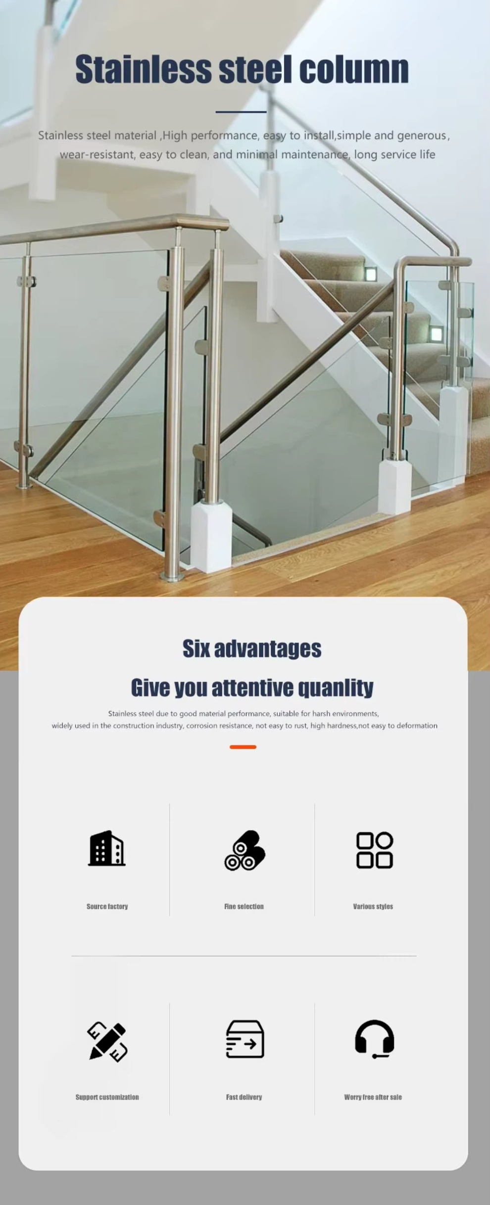 Floor-Mounted Stable Structure: Reinforced stainless steel posts (diameter ≥50mm) + anti-slip base—load-bearing ≥200kg per linear meter, preventing cable sagging or post shaking.