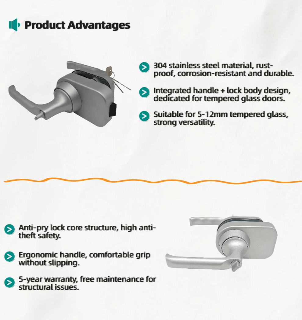 Stainless Steel Handle Door Lock Tempered Glass Slide Lock Glass Door Lock