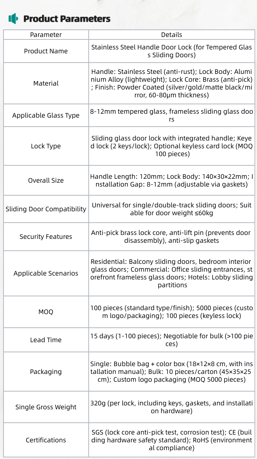 Ergonomic Handle & Security Integration: 120mm curved stainless steel handle (fits palm curve, no hand fatigue) with built-in brass anti-pick lock core (2 keys included) — balances daily usability and