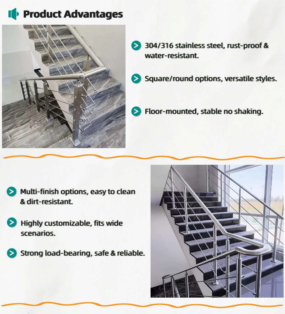 Stainless Steel Modern Handrail Post for Porch Stair Balcony Railings-Rust Resistant