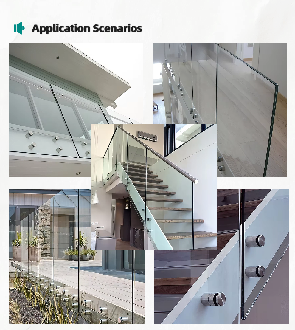 Full-Set Fitting Support: Provides matching screws, washers, and decorative caps (no extra purchase needed); compatible with 5-15mm tempered/laminated glass—covers glass railing, partition, and displa